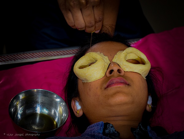 - Tarpana- Medicated ghee is made to retain for specific time with specific arrangements. This will nourishes eyes and prevents early progressive refractive error, eye strain and retinal diseases.